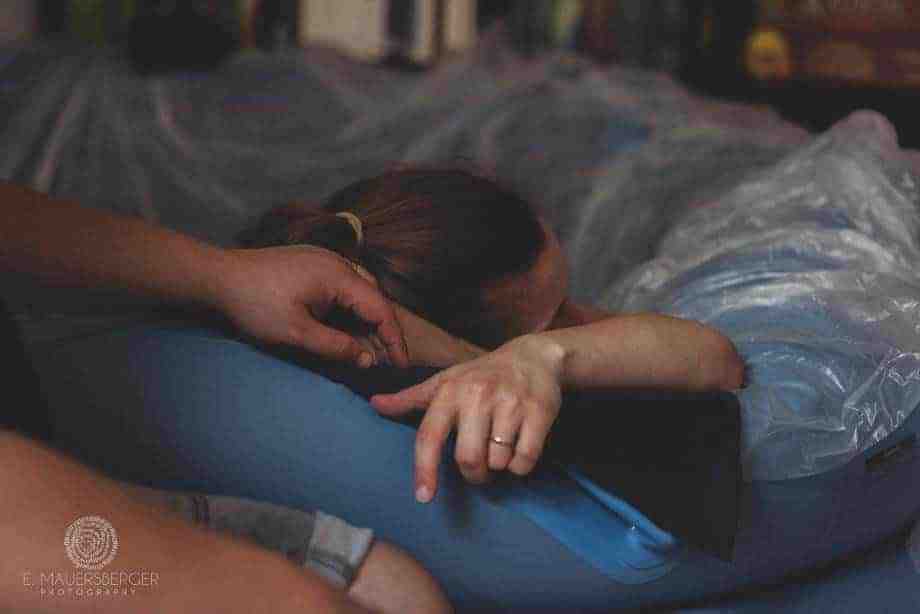 Meine Hebamme ist die ganze Zeit bei mir, kniet neben dem Pool und wartet mit mir auf Niklas, sagt mir, dass ich das gut mache. Ich glaube auch sie hofft, dass Niklas schnell wieder aus der Dusche zurück ist. (Hier geht es zu Teil 1, Teil 2, Teil 3)