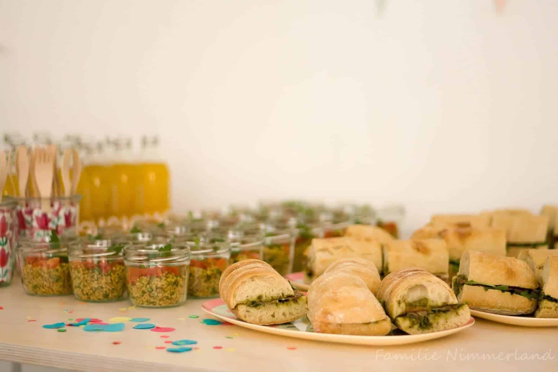 Natürlich darf bei einem tollen Event auch das Essen nicht fehlen. Und wie sollte es anders sein als bunt und süß? Es gab Cupcakes mit Lollies, bunte Candydöschen, Sandwiches (mit Pesto, Schinken, Tomaten und Rucola – genau meins!) und alles was das Herz begehrt. Ich war allerdings mit Fotos machen und Samuel hinterherrennen so beschäftigt, dass ich kaum etwas gegessen habe. Aber lecker war es!